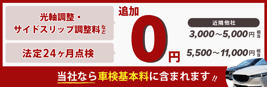 当店では上記のすべて、ホームページに記載してある車検基本料に含まれていますので、ご安心ください。