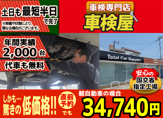 高知市で3.7万の格安車検 年間2千台の安い車検